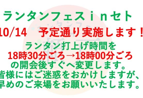 【日時】2023年10月14日(土)18:00開会(受付開始15:30〜)、LEDランタン打上げ18:30ごろ予定