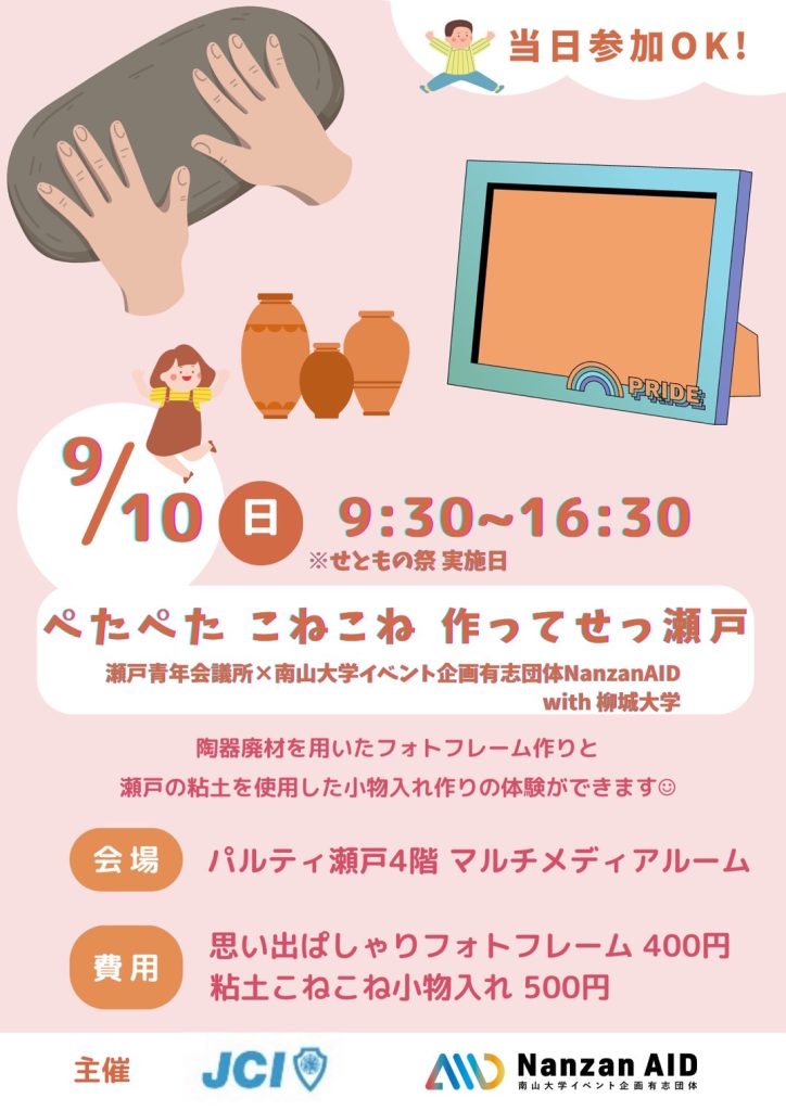 ぺたぺた こねこね 作って せっ瀬戸(瀬戸青年会議所 × NanzanAID with 名古屋柳城女子大学)
