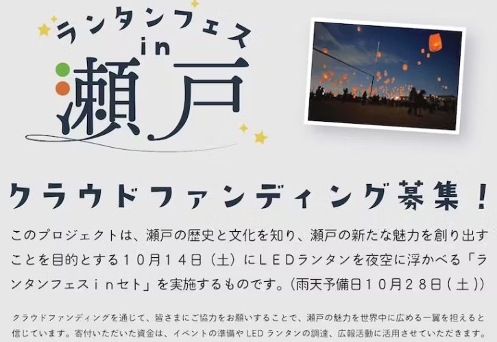 クラウドファンディングサイトはこちら⇒CAMPFIRE「ランタンフェスinセト」のページへ