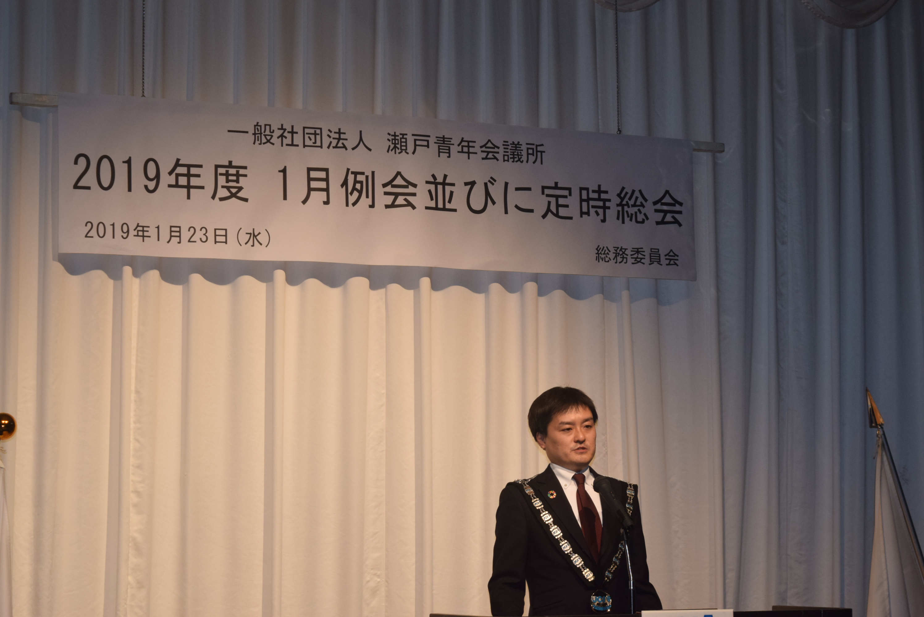 1月23日(水)にホテル名古屋ガーデンパレスにて、ご来賓、来訪JC、OB特別会員の皆様をお招きし、永井亨理事長の掲げる方向性をメンバーが共有し、強い絆を持ってスタートを切る場として、また鈴木紹陶武直前理事長の一年を振り返り、メンバーから感謝の意を表すとともに、功績を称えることを目的として(一社)瀬戸青年会議所2019年度1月例会並びに定時総会を開催致しました。