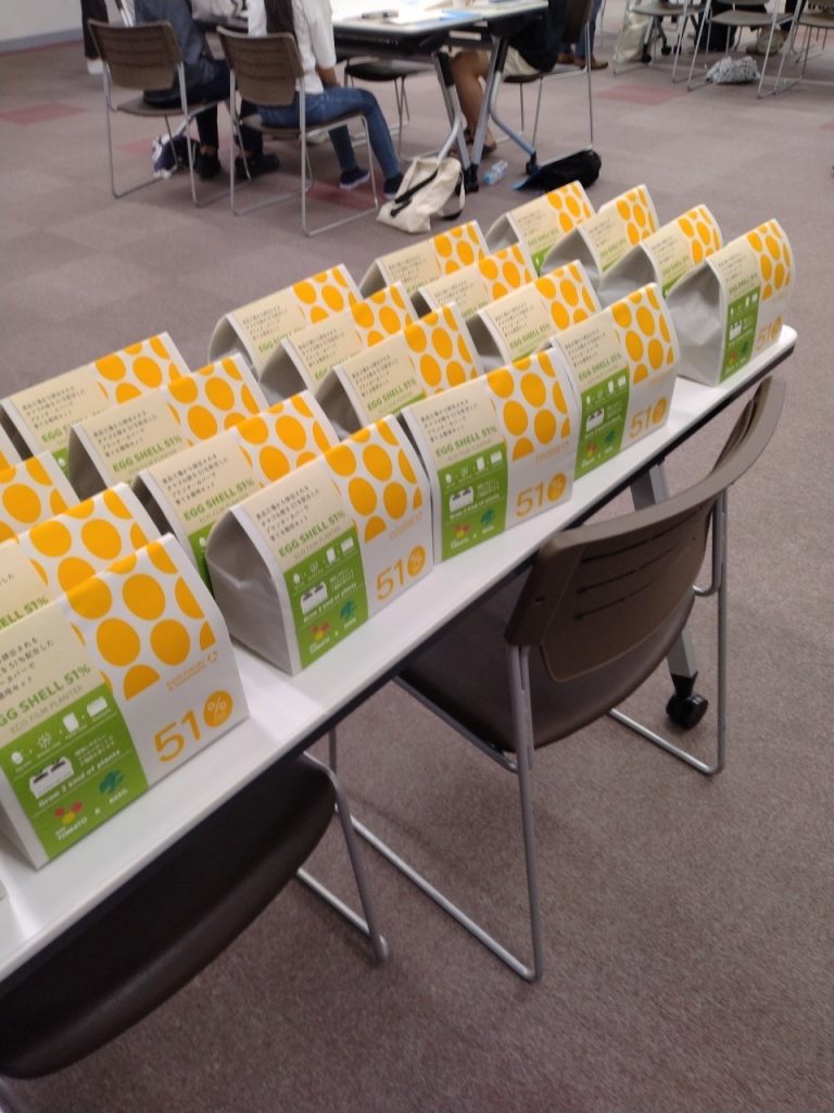 最後に伊勢谷社長からは特別協賛商品として通常はごみとして捨てられてしまうタマゴの殻を有効利用すると同時に、石油資源の削減に貢献できるSDGsな商品「エコエッグシェル」を参加者へ記念品としてお配りしました。