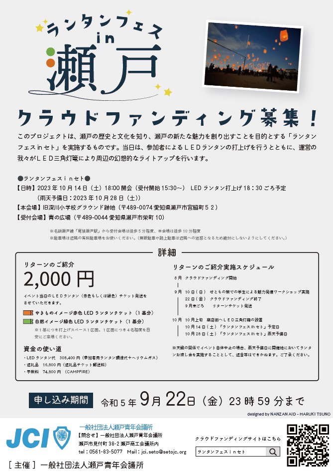 クラウドファンディングサイトはこちら⇒CAMPFIRE「ランタンフェスinセト」のページへ