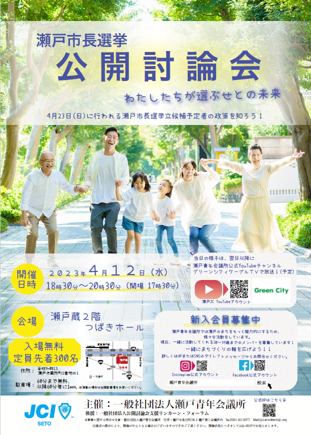 4/12(水) 瀬戸青年会議所主催 瀬戸市長選挙公開討論会