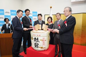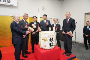 (写真)セレモニーを担当した江川正司委員長、牧幸佑幹事、松本大助委員