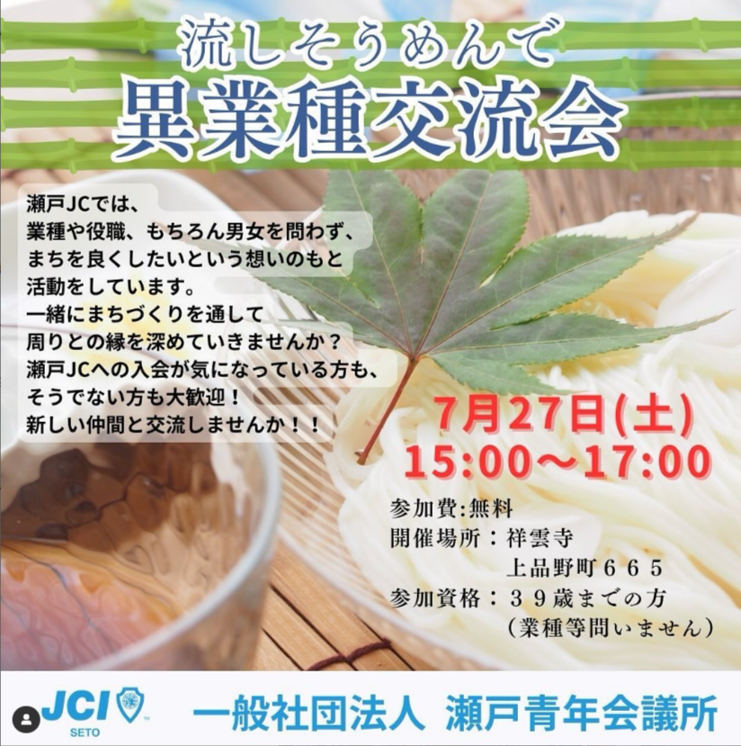 7/27(土)に上品野の祥雲寺にて「流しそうめんで異業種交流会を実施します!!